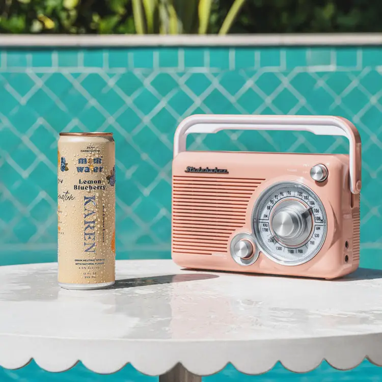 Linda is Blueberry Peach flavored Mom Water, and she is charismatic, playful, and creative. Linda is refreshing and boozy — the perfect poolside drink!